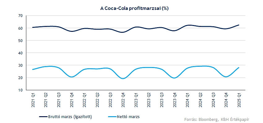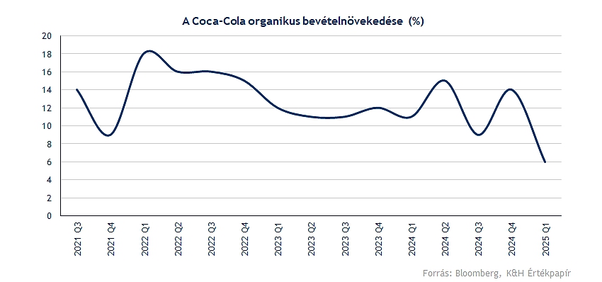 Az üdítőitalgyártó vegyes, de többnyire pozitívnak tekinthető negyedéves számokat tett közzé. 2025 első negyedévében a nettó árbevétel 11,12 milliárd dollárt tett ki, amely 2 százalékkal lett mérsékeltebb az előző év azonos időszakához képest. A vállalat organikus bevételnövekedése (amely külső tényezőktől mentes), az előző év azonos negyedévéhez képest 6 százalékot tett ki, amelyből az ármix növekedése 5 százalékot, a mennyiségi növekedése pedig 1 százalékot tett ki. A Coca Cola a 2025-ös évre vonatkozóan továbbra is 5-6 százalék közötti organikus bevételnövekedésre számít.