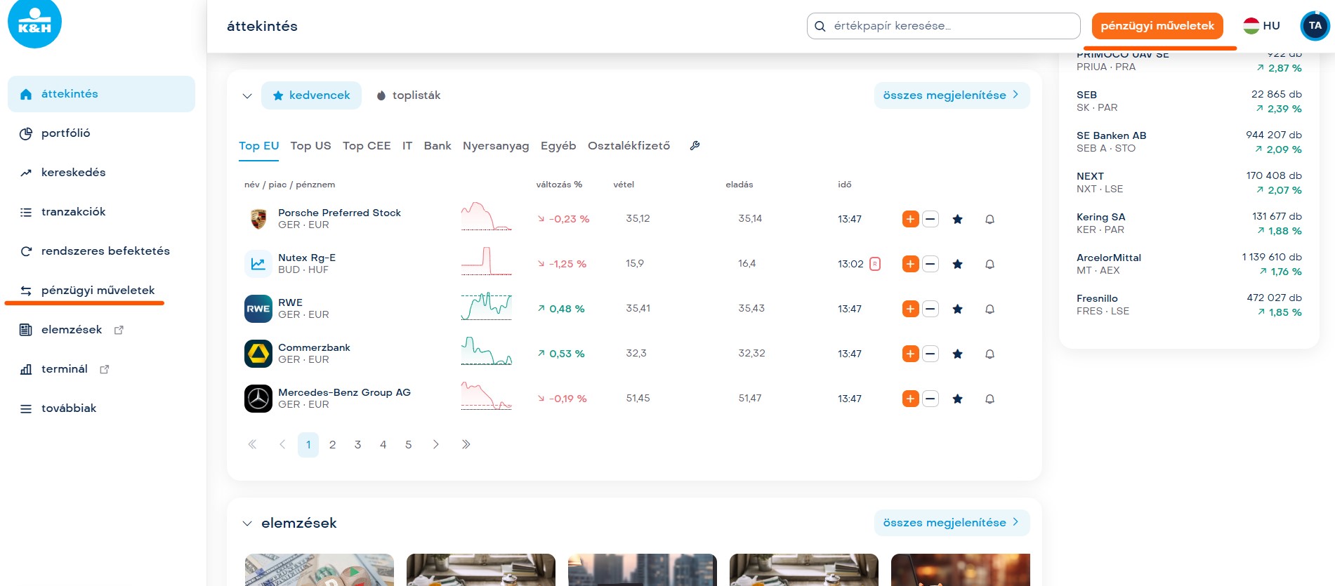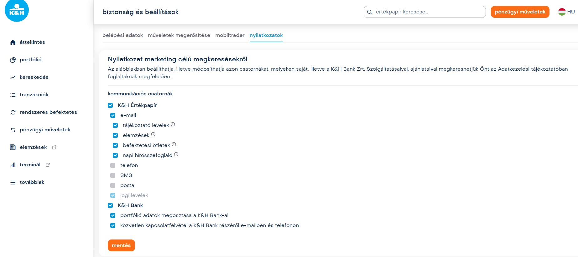 Ezen funkciók beállítása a K&H webtraderben vagy K&H mobiltraderben lehetséges.