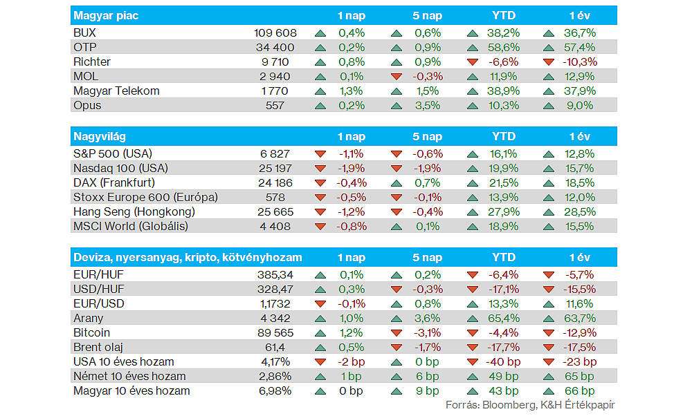 Nemzetközi piacok: Nem zárták erősen az előző hetet az amerikai piacok, a Nasdaq 100 végül 1,9 százalékos mínuszban zárta a pénteki kereskedést, de az S&P 500 is 1 százalék felett gyengült. Főleg a technológiai szektor szerepelt gyengébben, míg az egészségügy, vagy éppen a ciklikus fogyasztás még kismértékben javítani is tudott. Ezen felül végül a német piac sem tudott nagyobb erőt mutatni, bár itt legalább a csütörtöki záróérték körüli szint alakult ki. Az előző hét tehát nem alakult túl erősen, dacára a Fed szerdai kamatvágásának.