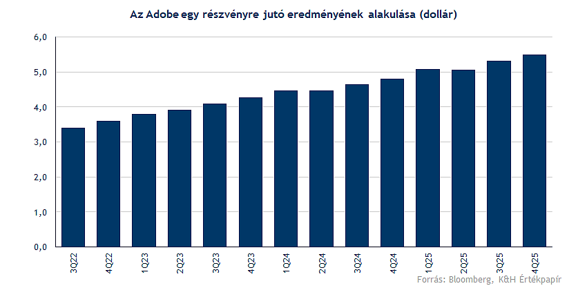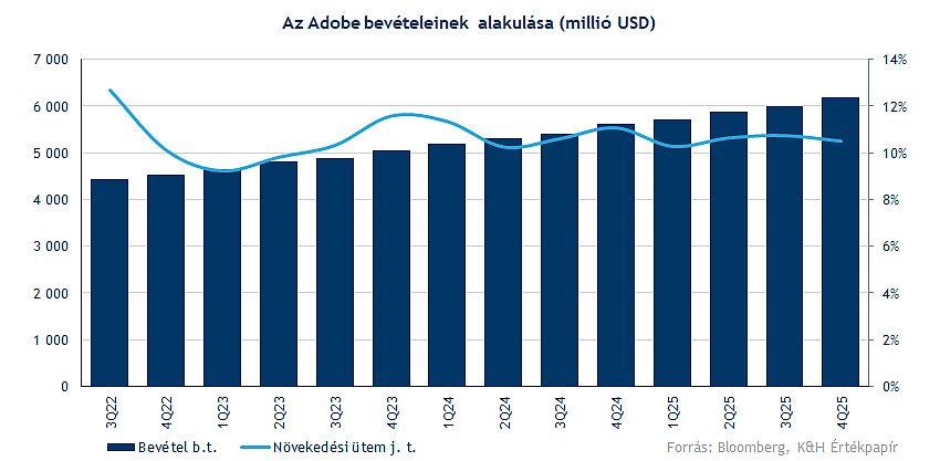 Kedvező előrejelzéseket tett közzé a következő üzleti évre vonatkozólag az Adobe, hiszen 25,9-26,1 milliárd dollár közötti bevételt termelhet ebben az időszakban, amely a konszenzus várakozását is felülmúlja, még ha egyes optimistább elemzők ennél is nagyobb bevétellel kalkuláltak. A most novemberben zárult 2025-ös üzleti év is felülmúlta az előzetes várakozásokat, látni azért az AI-eszközök sikerének és a monetizációjának javulását. Az évet tehát rekordmértékű, 23,77 milliárd dolláros bevétellel és 11 százalékos növekedéssel zárta a cég.