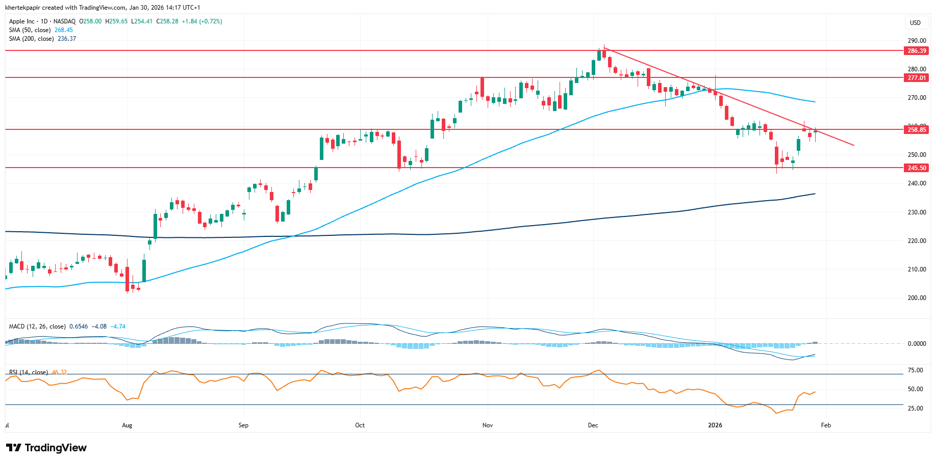 Az Apple napi grafikonja (2026. 01. 30. nyitás előtt)
