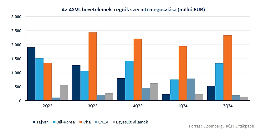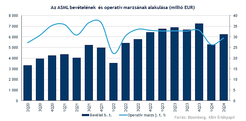 Az ASML 6,24 milliárd eurós (9,6 százalékos éves visszaesés) bevételt ért el, amivel felülmúlta a 6 milliárdról szóló elemzői várakozásokat. Éves alapon viszont csökkent az árbevétel, mivel Hollandia az év elején megtiltotta az ASML-nek, az úgynevezett DUV litográfiai gépek Kínába történő exportját, de ennek ellenére is Kína adta a cég értékesítésének 49 százalékát. Továbbá az ASML továbbra is szállítja azokat a berendezéseket, amelyeket még a tiltások bevezetése előtt vásároltak az ügyfelek. Kiemelendő azonban, hogy egyre nő a nyomás a cégen, így a geopolitikai helyzetre különösképpen figyelhetnek a befektetők, nemcsak ma, de a következő időszakokban is.