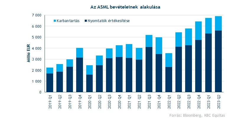 Az ASML fő bevételi forrása a DUV és EUV nyomtatók értékesítéséből származik, de ezen nyomtatók hibamentes működéséhez további garanciás szolgáltatásokat is nyújt a cég folyamatos karbantartásokkal. Ezzel folyamatosan beáramló cash flow-hoz jut a cég minden egyes eladott nyomtató után, kiegyenlítve a félvezető szektorra jellemző ciklikusságot valamelyest. A második negyedév alatt karbantartásból 1,3 milliárd euró bevétele származott a cégnek, ez ugyan kevesebb mint a korábbi negyedévekben, de éves szinten már nem látható csökkenés.