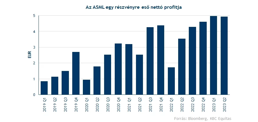Nettó profit téren viszont elmaradtak a rekordok, a jelenlegi 4,93 eurós EPS éppenhogy alacsonyabb lett a rekordot tartó előző negyedéves 4,96 eurónál. Összeségében azért szép profitszámok jellemezték az ASML negyedéves teljesítményét, így akár további részvényvisszavásárlásokra is lehet kilátás a jövőben. A cég még tavaly novemberben jelentette be, hogy egy új részvényvisszavásárlási programot indít, melynek összértéke 12 milliárd euróra rúghat. A program keretén belül 2023 második negyedévében összesen 500 millió euró értékben vásárolt saját részvényt a vállalat, javítva a céges EPS-számokat.