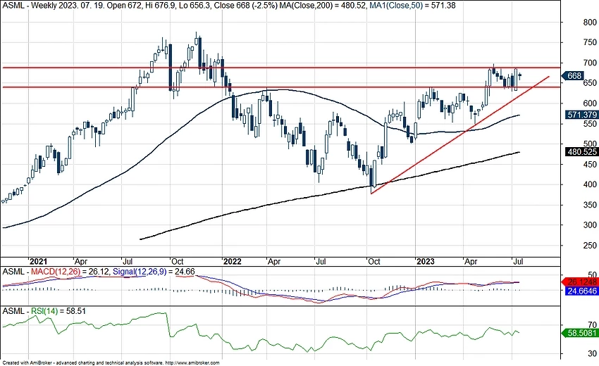 Az ASML heti grafikonja (2023. 07. 19. 14:45)