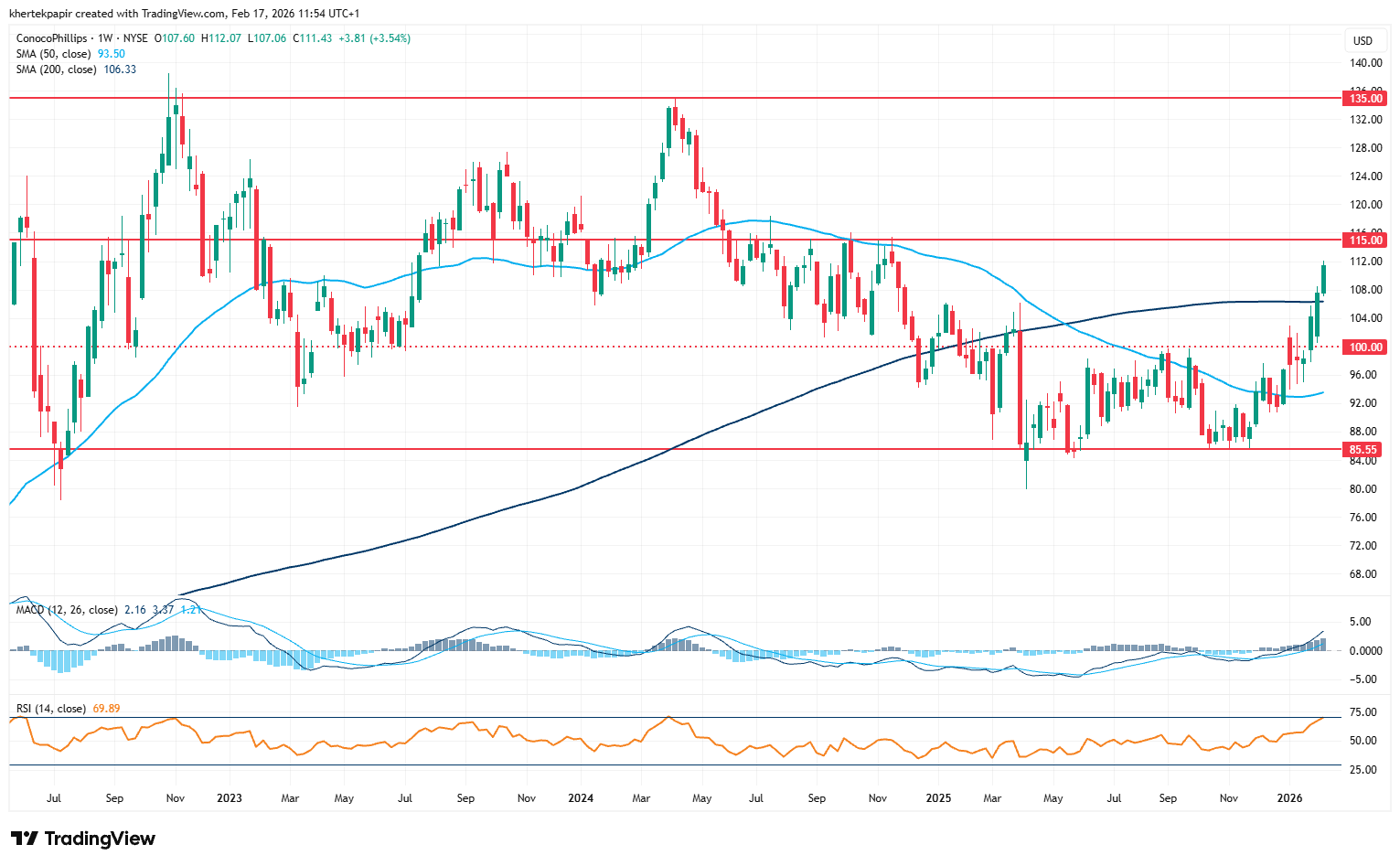 A ConocoPhillips heti grafikonja (2026. 02. 17. nyitás előtt)