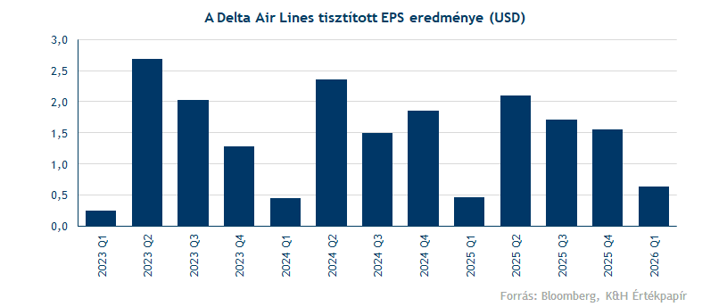 A globális légiipar számára kedvezőtlen hatással bír a közel-keleti helyzet, ugyanis az olajárak jelentős megugrása a légitársaságok üzemanyagköltségeit is érdemben növelte, ami a szektoron belül visszavetette a profitvárakozásokat. A romló kilátások közepette pedig több légitársaság részvénye is nagyobb esést szenvedett el az elmúlt hónapok során, bár az amerikai részvénypiacon a Delta Air Lines ebben a környezetben ellenállóbb tudott maradni, kedvezőbb helyzetének köszönhetően. Ráadásul a légitársaság tegnap elsőként publikálta első negyedéves eredményeit a nagy amerikai légitársaságok közül, amelyre kedvező fogadtatás érkezett a befektetők részéről.