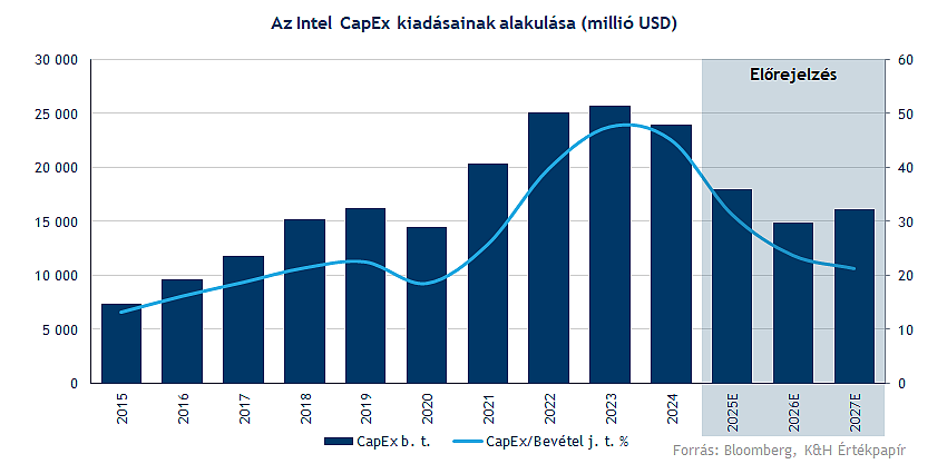Az Intel korábbi vezetősége a chipgyártó kapacitásának bővítéséről döntött, látva az AI chipek iránti hatalmas szektorszintű keresletet. Ennek nyomán jelentős költekezésbe kezdtek, ami azonban nem térült meg az utóbbi években. Az Intel így például a tavalyi évet is jelentős veszteséggel zárta, azonban az új vezetőség a költségek visszaszorítását tűzte ki célul, így konzervatív megközelítés hatására az idei évben újra nyereséges lehet az Intel. A Bloomberg konszenzusa 640 millió dolláros tisztított nettó profitot prognosztizál 2025-re, emellett a többi marzsban is (bruttó-marzs, EBITDA-marzs) is kisebb javulás várható.