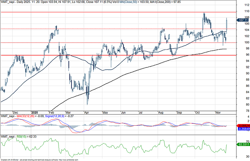 A Walmart napi grafikonja (2025. 11. 21. nyitás előtt)