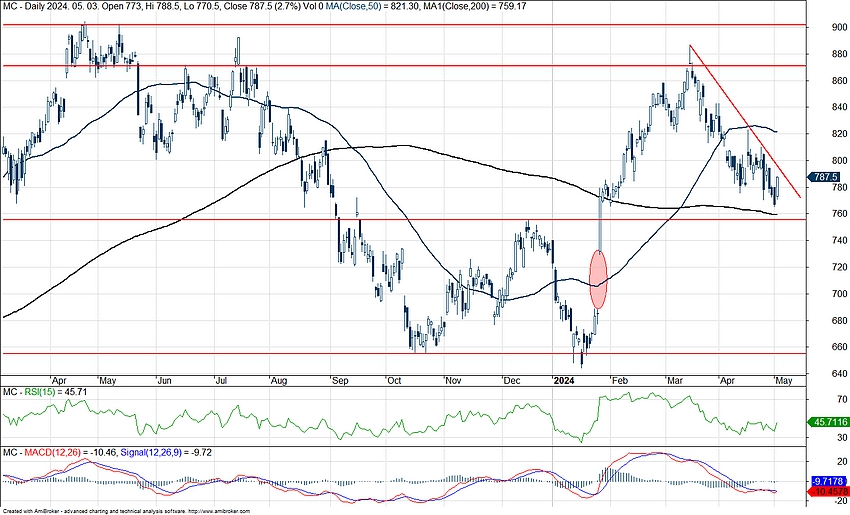 Az LVMH napi grafikonja (2024. 05. 03. 12:30)