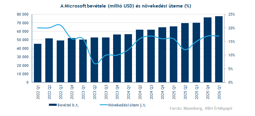 A vállalat pénzügyi teljesítményére nem lehet nagyon panasz, a Microsoft az elmúlt három évben szinte minden negyedévben rekord bevétellel zárt. A cég legutóbbi (2026-os üzleti első negyedéves) jelentésében 15 százalékos bevételnövekedésről és több mint 24 százalékos profitnövekedésről számolt be. A felhőszolgáltatásokat magába foglaló intelligens felhő szegmens további (28 százalékos) növekedésre volt képes, ezen belül az Azure 39 százalékos éves növekedése jól mutatja, milyen erős AI-kereslettel szembesül a Microsoft. Bár a befektetők ennél is magasabb növekedési ütemet vártak az Azure bevételeitől, így részben ennek elmaradása okozta a negatív piaci reakciót október végén.