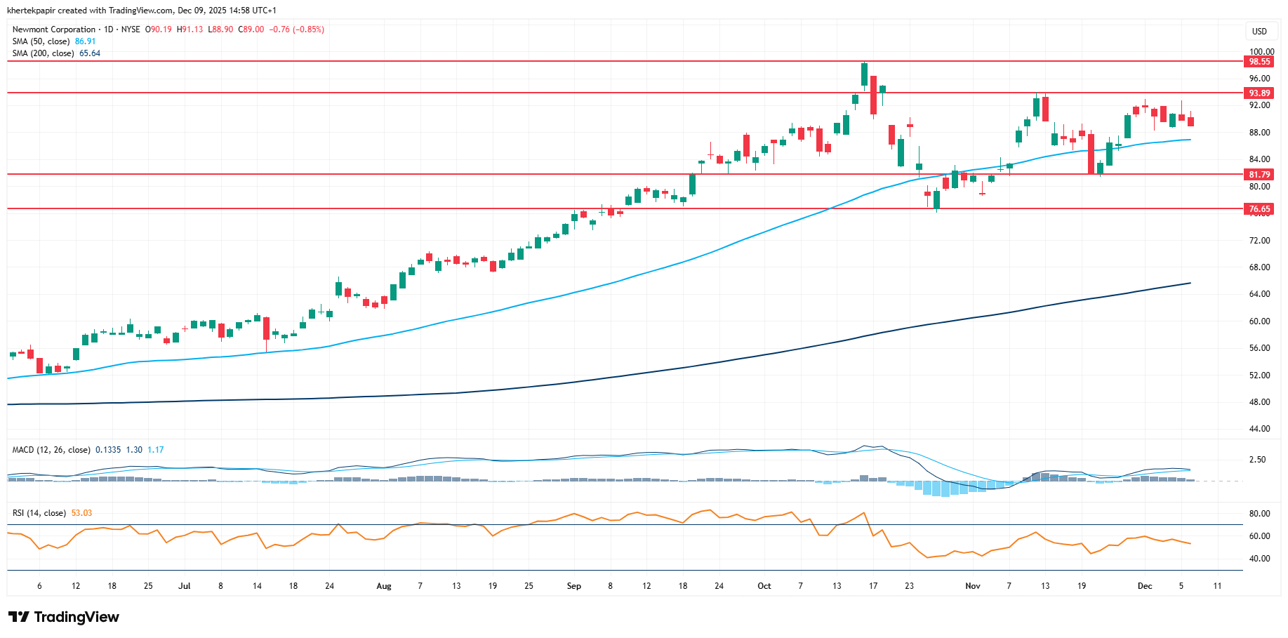 A Newmont napi grafikonja (2025. 12. 09. nyitás előtt)