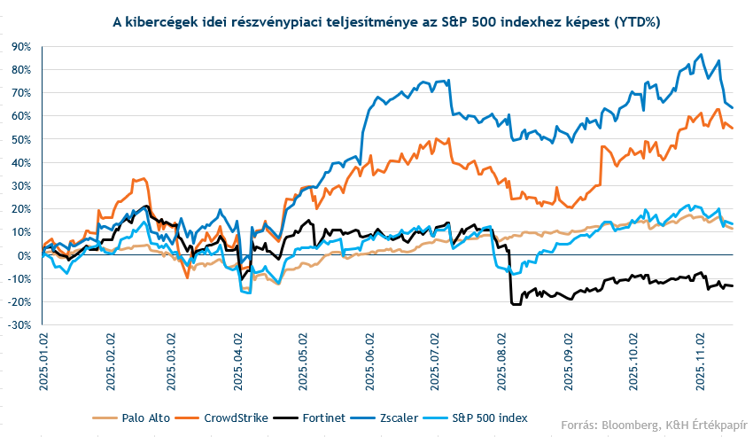 A kiberbiztonsági szektor erőteljes két számjegyű növekedést mutat, amelyet a fokozódó digitalizáció, az AI fejlődése és a kiberbiztonsági megoldások elterjedése is hajt. A szektorba irányuló beruházások tovább erősítik a kiberbiztonsági vállalatokat, amelyek idén többnyire felülteljesítik az amerikai indexeket a részvénypiacon. A Fortinet már közzétette friss negyedéves eredményeit, a következő hetekben a Palo Alto Networks, a Zscaler és a CrowdStrike gyorsjelentéseire figyelhetnek a befektetők.