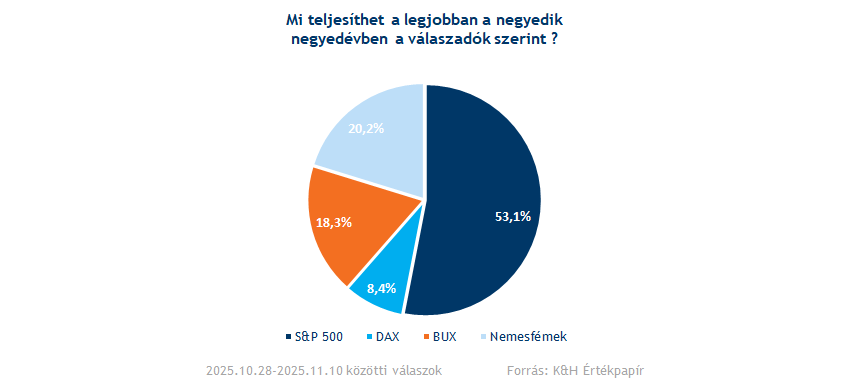 A befektetők jelenleg már a 2025-ös év utolsó negyedévében vannak, így pár hete már egy extra kérdést is feltettünk a hangulatindex általános kérdése mellett, ami konkrétan most erre a negyedévre vonatkozott. A kérdés úgy szólt, hogy a befektetők mitől várják a legjobb eredményt a négy főbb válasz lehetőség közül. Végül viszonylag könnyedén, de az S&P 500 győzött: