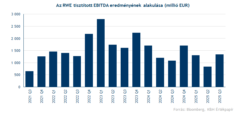 Az energiacégek esetében nagyobb figyelem hárul az EBITDA mutatóra, ugyanis ez rávilágít a vállalat működési eredményére az energiapiac volatilitása és a szektorban jellemző magas beruházási igények mellett. Ebben a mutatóban az RWE 2025 januártól szeptember végéig 3,5 milliárd eurót ért el, ami meghaladta az előzetes, mintegy 3,14 milliárd eurós várakozást.