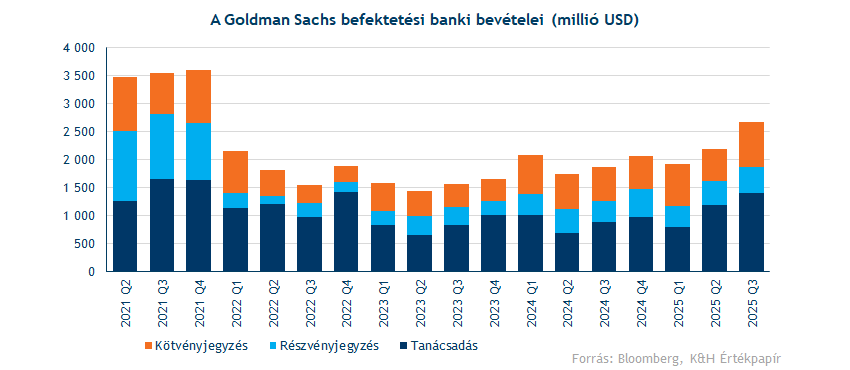 A szegmensek közül kiemelendőek a tanácsadói bevételek, amelyek 60 százalékkal nőttek 2024-hez képest. A Goldman Sachs idén több fontos tőzsdei kibocsátásban is részt vett, a fentebb már említett Klarna, Figma és Firefly IPO-kban is tanácsadói szerepet vállalt a bank. Ezen kívül az M&A ügyletek is felpörögtek, a Bloomberg szerint csak a harmadik negyedévben az 1000 milliárd dollárt is meghaladta az M&A piac globális volumene, ez mindössze a második alkalom, amikor erre sor került. A Goldman Sachs tanácsadói bevételei egyébként utoljára 2022 negyedik negyedévben voltak ilyen erősek, amikor az amerikai kamatemelések hatása még nem gyűrűződött át az M&A piacra. A részvény- és kötvényjegyzés kapcsán évi 20, illetve 30 százalékos növekedés volt megfigyelhető, így az összes befektetési banki bevétel elérte a 2,6 milliárd dollárt.