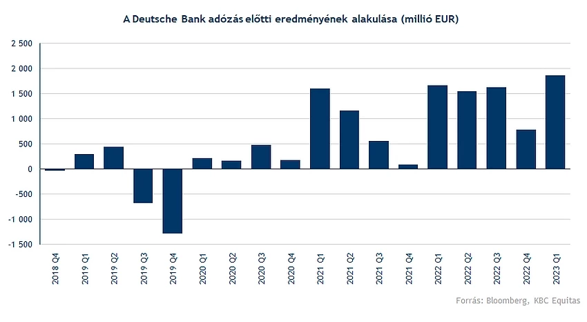 Kedvező negyedéves gyorsjelentésről számolt be a Deutsche Bank az első negyedévben, amely különösen a márciusi bankszektort érintő események miatt pozitívum lehet a befektetők számára. A banknál az átalakítások hatásai látszódnak, illetve a trendeket illetően a monetáris szigorítás játszik leginkább szerepet az eredmények javulásában. A kereskedelmi banki tevékenység mellett viszont a befektetési bank is jól teljesített.
