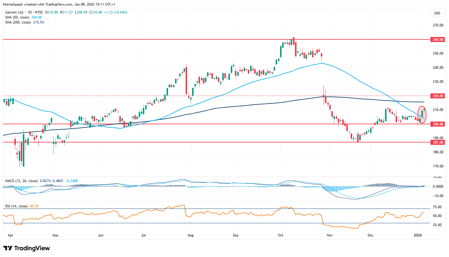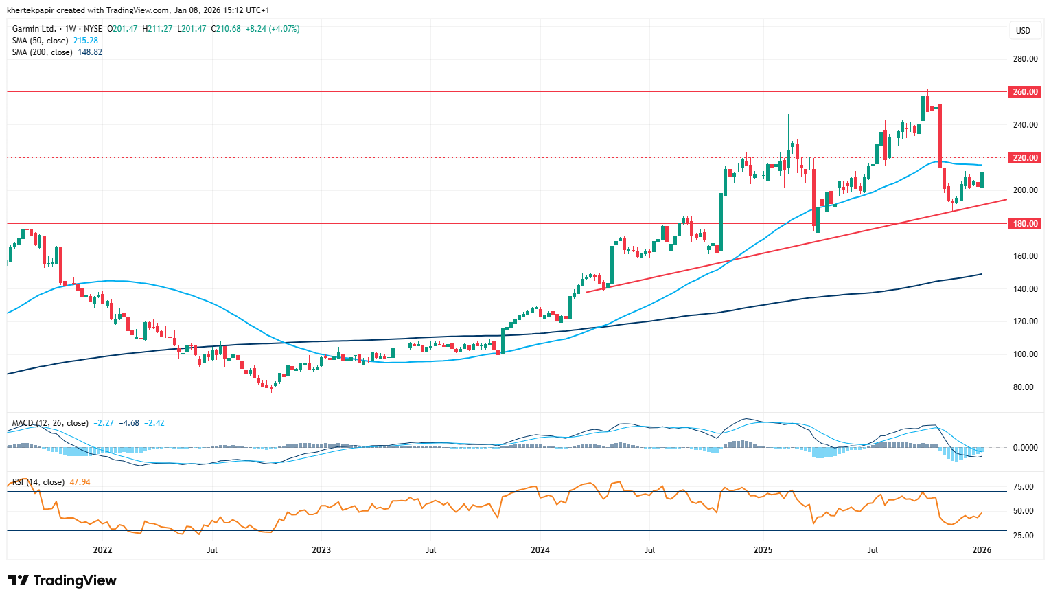 Vegyes 2025-ös évet zárt a Garmin részvénye, októberben ugyan új történelmi csúcsokat jelölt ki az árfolyam 260 dollár környékén, de a legutóbbi jelentés után egy korrekcióra került sor a részvény grafikonján. Így az évet végül minimális mínuszban zárta az árfolyam, pedig az utóbbi években stabil növekedésre volt képes a sportóráiról híres vállalat.
