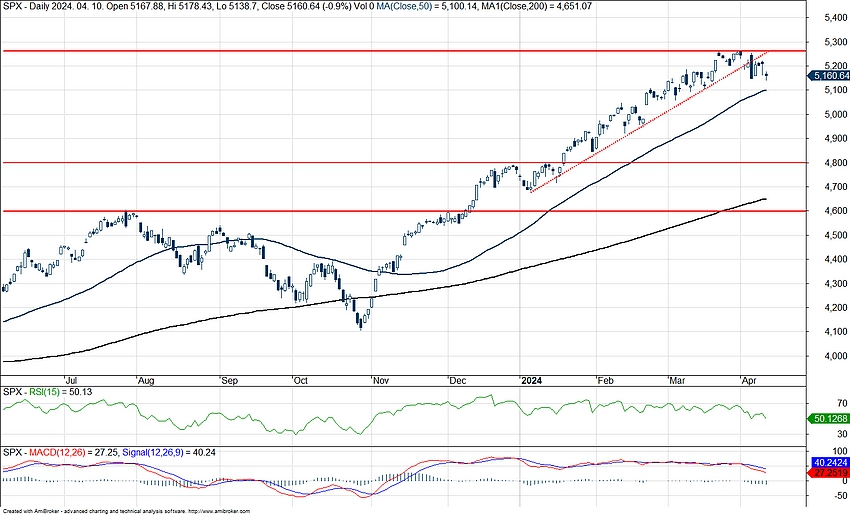 Az S&P 500 napi grafikonja (2024. 04. 11. nyitás előtt)