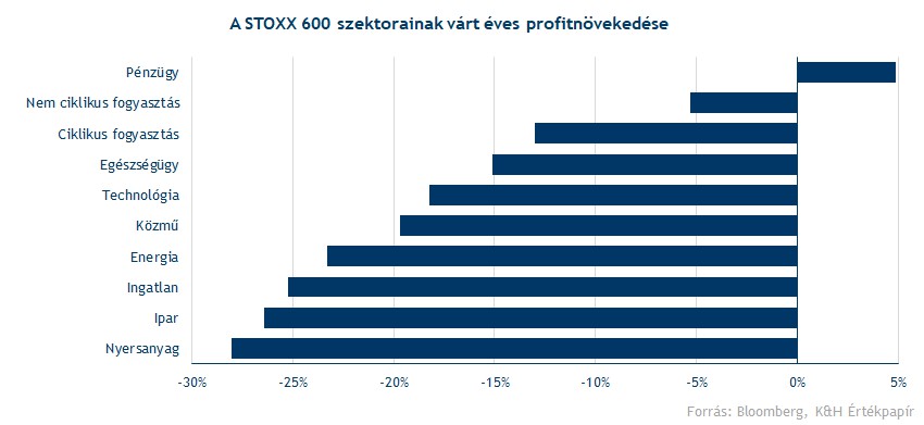 Többször írtunk már korábban arról, hogy az európai gazdaság, és így az európai céges számok csak kullogva követik Amerikát, ebben a trendben nem történt drasztikus változás az elmúlt hónapok során sem. Európában tehát még nem beszélhetünk a bevételek vagy a profitok növekedéséről az idei első negyedévben, bár az év további része akár már pozitív fordulatot hozhat. Az első negyedév során átlagosan 5,2 százalékkal csökkenhettek a STOXX 600 index komponenseinek bevételei a tavalyi szintekhez képest. Nem segíti az európai vállalatok bevételeit, hogy az infláció továbbra is csökkenő pályán mozog Európán belül, márciusban már 2,4 százalékos volt az éves fogyasztói árindex az Eurózónában.