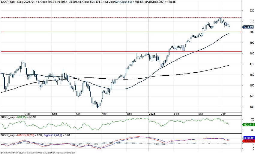 Az STOXX 600 napi grafikonja (2024. 04. 11. 13:15)
