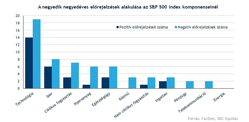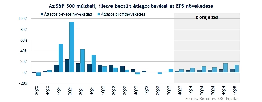 Az eddig jelentett cégek számai, illetve az elemzői várakozások alapján 1,4 százalékos bevételnövekedést érhettek el az S&P 500 komponensei a harmadik negyedév során, ehhez 6,3 százalékos EPS-bővülés kapcsolódhatott. Az előző gyengébb időszakot követően tehát elindult egy pozitív fordulat, ebben szerepet játszhat már a gyengébb bázishatás is, de több társaságnál stratégiaváltásnak lehettek tanúi a befektetők, így a költséghatékonyság növelése nagyobb fókuszt kapott immár, ez pedig a profitabilitás javulását is eredményezheti. Így a következő negyedévekben is érdemi profitnövekedést helyeztek kilátásba az elemzők, míg bevételi oldalon kisebb mértékű emelkedés várható azért.