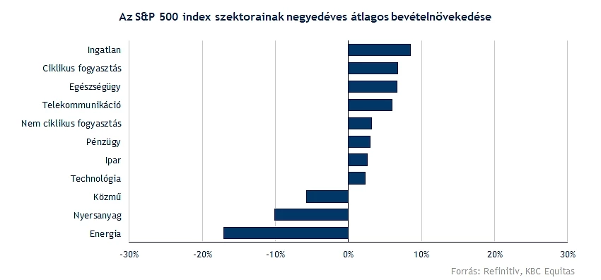 A bázishatás leginkább két szektor teljesítményére volt negatív kihatással, a nyersanyagszektor, illetve az energiaszektor bevételi számai alakultak kimondottan gyengén. Előbbinél átlagosan 10,2 százalékos, míg utóbbi esetében 17,1 százalékos visszaesés mutatkozott. A legnagyobb javulás ezzel szemben az ingatlanszektornál volt megfigyelhető, bár kétszámjegyű növekedés itt sem látható még.