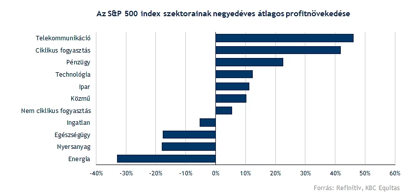 Hatalmas változás a következő negyedévben sem várható a trendekben, így az energiaszektor a magas bázishatás miatt változatlanul alulteljesítő maradhat, míg a fogyasztási javak szektor folytathatja a javuló tendenciát. A kommunikációs szektor szintén erős teljesítményt tehet le az asztalra, hiszen 50 százalékos profitnövekedést várnak az elemzők a Refinitiv adatai alapján.