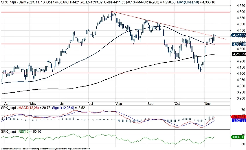 Az S&P 500 index napi grafikonja (2023. 11. 14. nyitás előtt)
