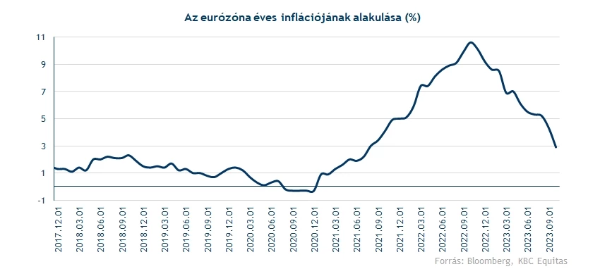 Mostanra már szinte biztosra vált, hogy nem tervezi a kamatok további emelését az EKB, tetőzhetett a kamatpálya Európában. Azt Christine Lagarde EKB elnök is jelezte már, hogy szerinte eleget tettek annak érdekében, hogy az inflációt letörjék Európában, és láthatóan tényleg ebbe az irányba mutatnak jelenleg a folyamatok. Az éves fogyasztói árindex októberben már 3 százalék alá csökkent vissza, 2021 július óta első alkalommal.