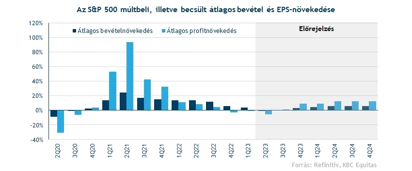 A következő negyedévekben viszont már stagnálhatnak a bevételek, vagy akár csökkenésnek is indulhatnak. Profit téren is nagyobb visszaesést várnak az elemzők, láthatóan nem lesz egyszerű dolguk a cégeknek a korábbi profitabilitás fenntartásával a közeljövőben. Jelentősebb javulás csak az év vége felé várható, a javuló gazdasági kilátások mellett az alacsonyabb bázisok is segíthetik majd a növekedési ütemet a negyedik negyedévben.