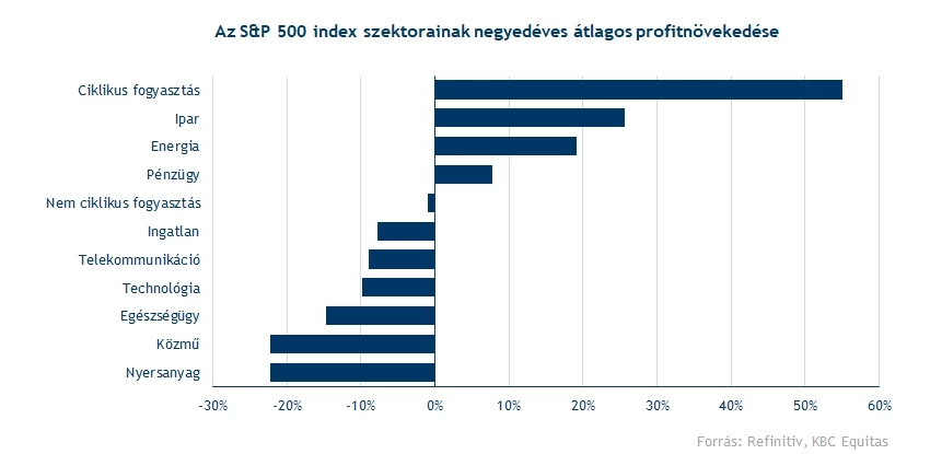 Profitok tekintetében már nem volt ennyire erősnek mondható a cégek első negyedéves teljesítménye, mivel a bevételekkel együtt láthatóan a költségek is növekedésnek indultak. Az energiaszektorban egyelőre kitart a magasabb profitabilitás, igaz, az előző negyedévekhez képest már itt is csökkenés látható. Az energiacégek mellett a pénzügyi, a ciklikus fogyasztási, valamint az ipari szektor szereplői is tudták növelni profitjaikat előző évhez képest, de a lista itt véget is ér.