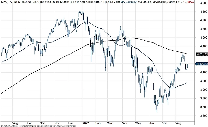 Az S&P 500 napi grafikonja (2022. 08. 26. nyitás előtt)