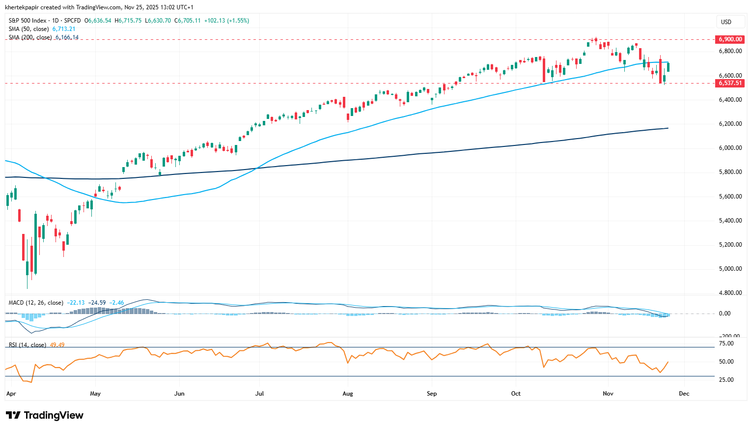 Az S&P 500 napi grafikonja (2025. 11. 25. nyitás előtt)