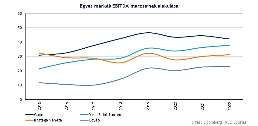 Több nagy divatház termékei is a Kering égiszei alá tartoznak, a bevételek felét a Gucci márka teszi ki, így ennek javulása mindenképp elengedhetetlennek számít az ázsiai régióban. A legnagyobb marzsokkal is ez a divatház rendelkezik, az elmúlt években már stabilan 40 százalék feletti EBITDA-marzs mutatkozott a Guccinál, de az Yves Saint Laurent is egyre jobb profitabilitási mutatókat tud produkálni évről évre.