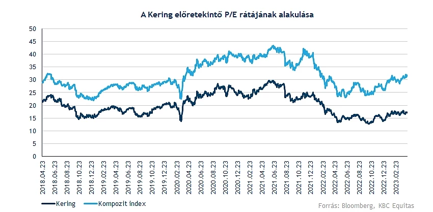 A 17-es előretekintő ráta önmagában talán nem mondana sokat, hiszen se nem túl alacsony, se nem túl magas ez az érték. Az iparági átlaghoz képest is nagymértékű diszkont mutatkozik, hiszen átlagosan 31-es előretekintő mutató látható a versenytársaknál, ami már nem nevezhető alacsonynak. Egyébiránt a múltban is folyamatosan diszkonton forgott a papír, voltak időszakok, amikor kisebb volt a rés, jelenleg viszonylag lemaradónak tűnik a Kering, amelyet a fundamentumok nem feltétlenül indokolnának. Önmagához képest is alacsony mutatókkal rendelkezik a társaság, így ezeken a szinteken nem tűnik túlárazottnak a papír jelenleg.