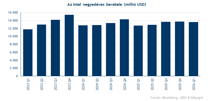 Több fő soron is felülteljesítő tudott lenni az Intel az elmúlt negyedév során, a chipgyártó negyedéves bevétele évi 7 százalékot emelkedve 13,6 milliárd dollárt tett ki, ami jóval meghaladta a konszenzus által előzetesen várt 12,36 milliárd dollárt.