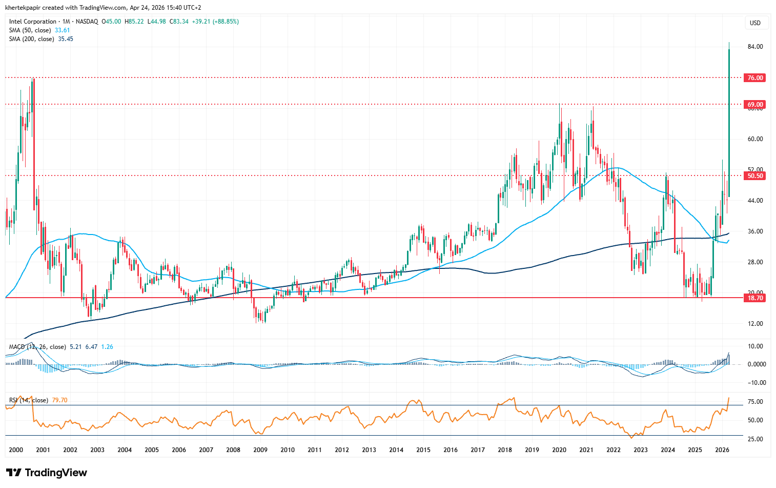 Az Intel havi grafikonja (2026. 04. 24. 15:40)