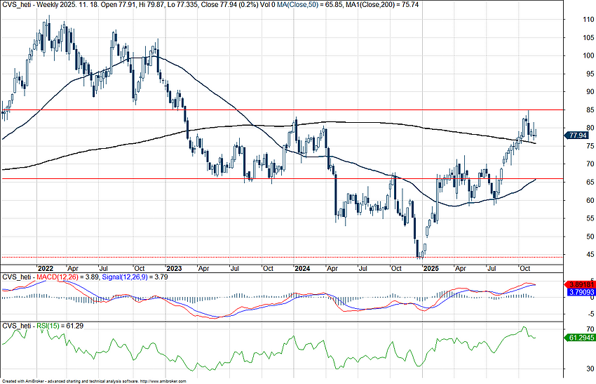 A CVS Health heti grafikonja (2025. 11. 19. nyitás előtt)