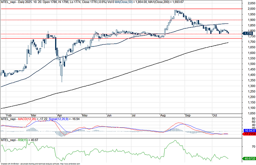 Kissé megrekedt az 1800 forint körüli szinteken a Telekom árfolyama, az 1770 forintos támaszról többször is megpróbált felpattanni a részvény, de stabil emelkedő trend kiépítésére egyelőre nem volt képes. Távolabbi ellenállásként még a 2000 forintos szint azonosítható, egyelőre a kedvezőbb piaci környezet ellenére sem tudott megindulni a papír, így a befektetők a harmadik negyedéves eredményekre is várhatnak, amelyet majd november 12-én tesz közzé a társaság.