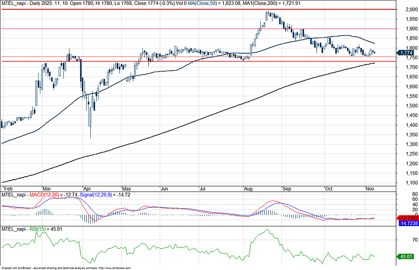 A szerdai gyorsjelentésre várhatnak a befektetők, amelyet a Telekom majd piaczárást követően tesz közzé. A grafikonon az elmúlt hetek során oldalazó mozgás bontakozott ki 1760-1820 forint közötti szinteken, egyébként a második negyedéves jelentés előtt is hasonló mozgások mutatkoztak, ezt követően a gyorsjelentés tudott löketet adni a részvénynek. Ellenállást változatlanul tehát az 50 napos mozgóátlag, illetve a 2000 forintos szint képezhet, a héten az esetlegesen kedvező negyedéves eredmények hozhatnának új lendületet a részvény számára.