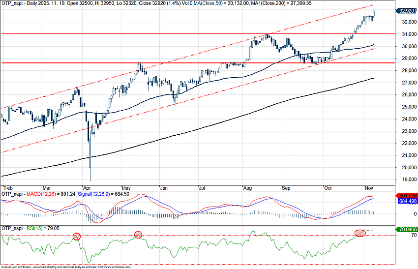 Az OTP napi grafikonja (2025. 11. 10. 11:20)