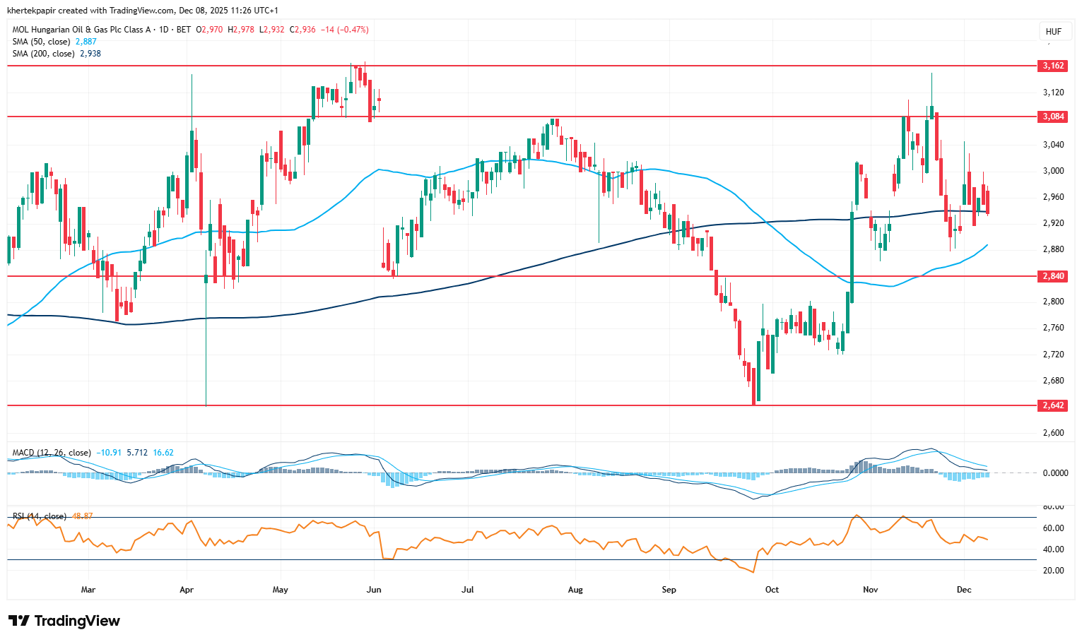 Nem tud tartósan elszakadni a 3000 forint körüli szintektől a Mol, ma délelőtt is valamelyest ez alatt mozog az árfolyam, stabil emelkedő trend képe egyelőre nem rajzolódott ki a napi grafikonon, de az 50 napos mozgóátlag is javuló tendenciát jelez immár. Fontosabb ellenállást változatlanul a 3100 forintos szintek képezhetnek, illetve a 3200 forintos akadály áttörése adhatna nagyobb lendületet, hiszen e felett már 2019 óta nem járt a magyar olajtársaság részvénye. Az idei teljesítményre így sem érkezhet panasz a befektetők részéről, hiszen a nagyobb mértékű osztalékkifizetéssel együtt már 19 százalékos javulásnál jár.