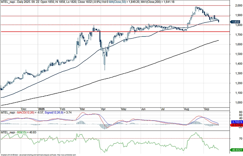 Továbbra is az 50 napos mozgóátlagán ragadt meg a Magyar Telekom árfolyama, így innen próbál lendületet gyűjteni jelenleg a részvény. Ellenállást a 2000 forintos szintek képezhetnének, augusztusban is ezekről a szintekről fordult le a papír, a fundamentumok továbbra is erős képet festenek a társaságról, így a növekvő részvényesi juttatások is segíthetnek hosszabb távon is a részvénynek. Védelmet lejjebb még az 1800 forintos szint képezhet, sokáig 1730-1800 forint közötti sávban oldalazott a papír, ahonnan azaugusztusban közzétett negyedéves gyorsjelentés billentette ki az árfolyamot.