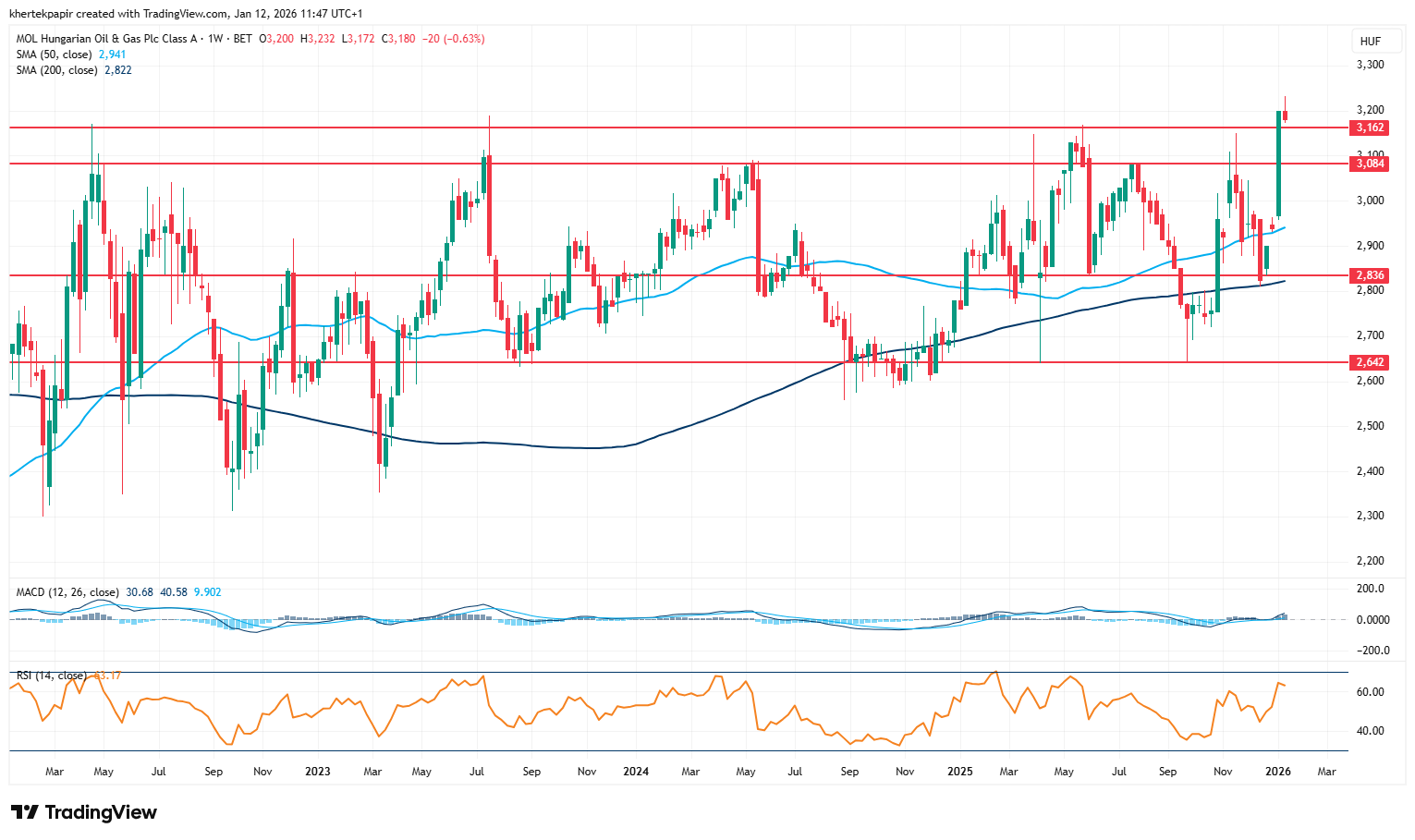 Rég nem látott szintekre emelkedett a Mol az elmúlt napok során, hiszen 2019 óta nem tudta elérni a 3200 forintos szinteket a részvény. Jelenleg is ennek környékén mozog az árfolyam, kissé gyengülni látszik a momentum, így akár a 3080-3100 forint körüli szintek a közeljövőben támaszként is szolgálhatnak. Az év eleje óta így a Mol az egyik legerősebb BUX komponensnek számít, ráadásul a nemzetközi szektortársak között is kiemelkedő egyelőre a magyar olajtársaság. A negyedik negyedéves gyorsjelentését majd csak később, februárban publikálja a Mol, emellett a befektetők az esetleges NIS tranzakcióval kapcsolatos hírekre is figyelhetnek.