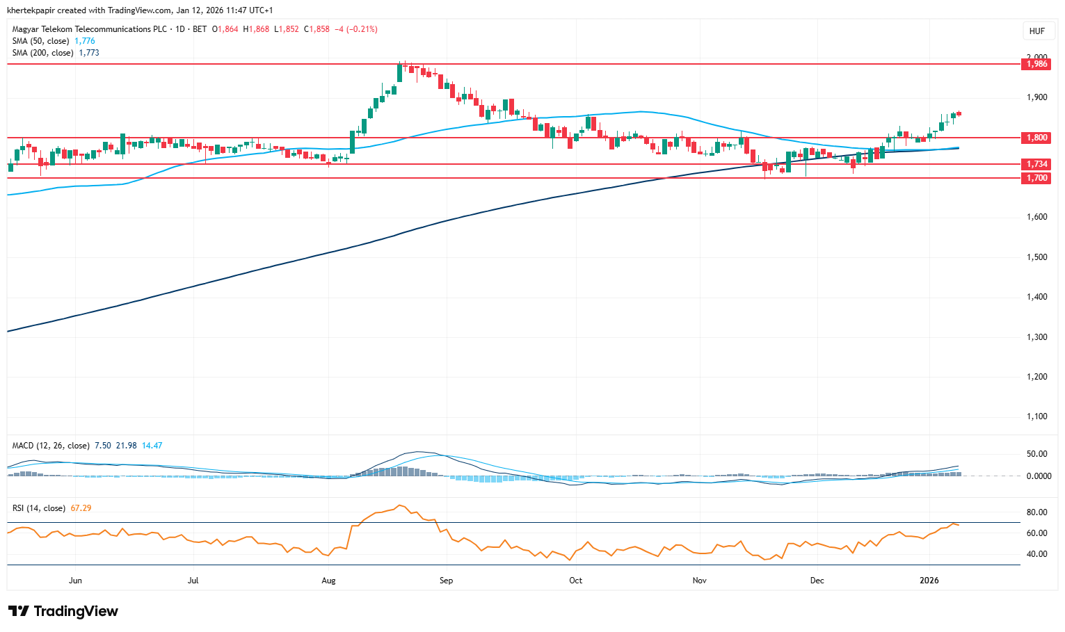 A Magyar Telekom napi grafikonja (2026. 01. 12. 11:32)