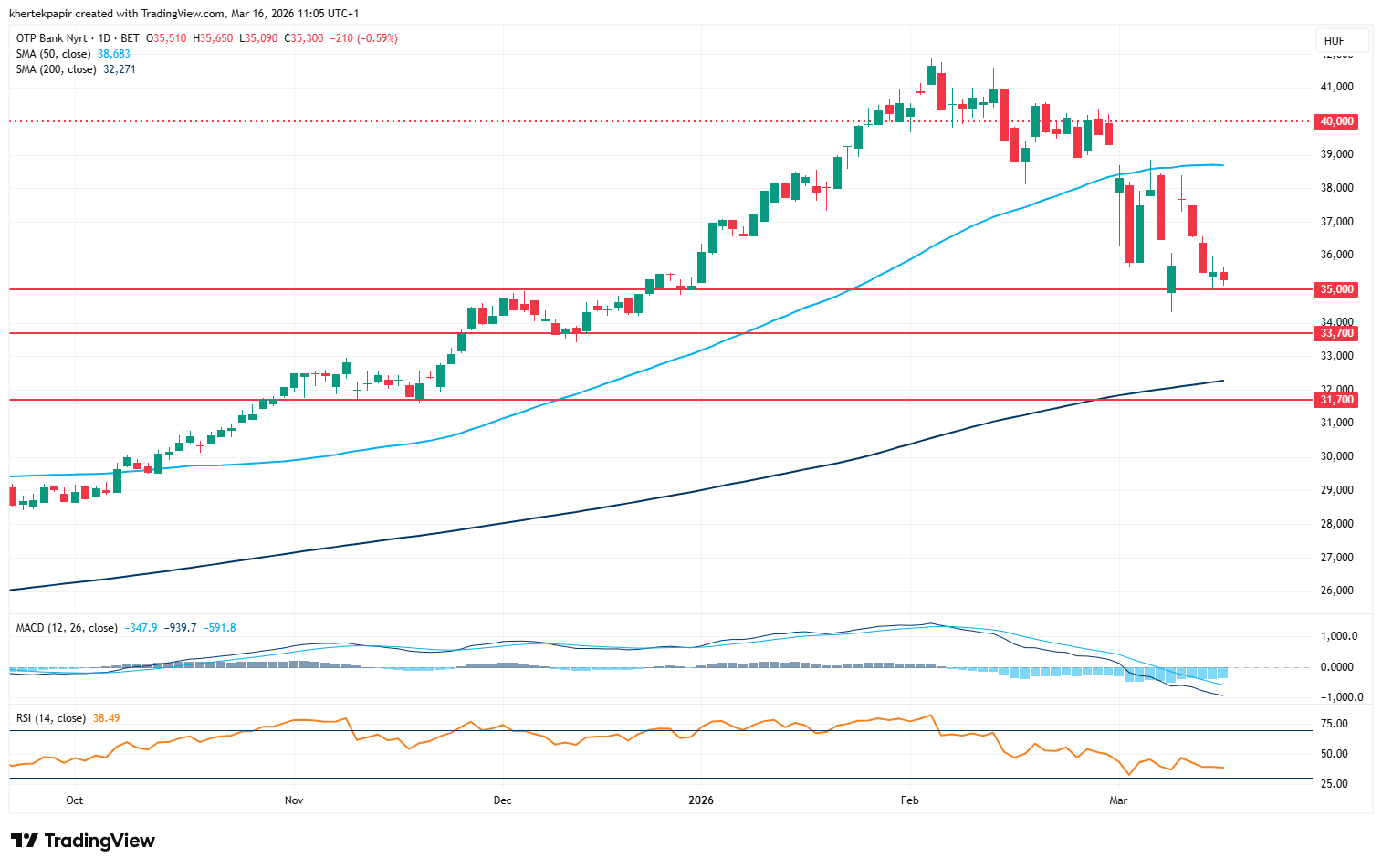 Az OTP napi grafikonja (2026. 03. 16. 10:50)