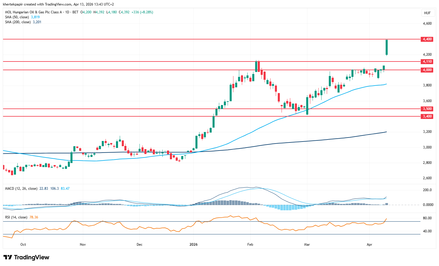 A Mol napi grafikonja (2026. 04. 13. 13:28)