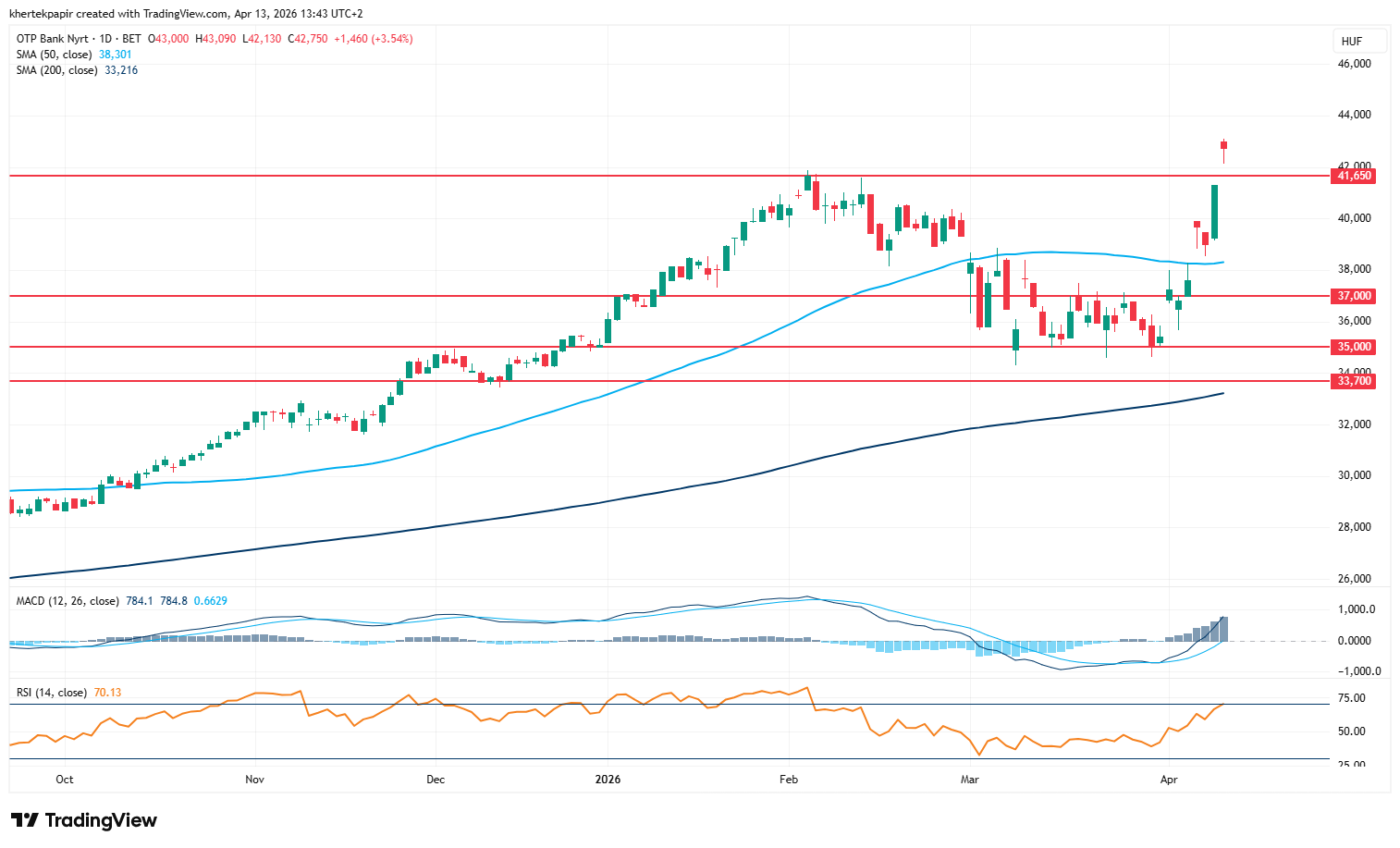 Az OTP napi grafikonja (2026. 04. 13. 13:28)