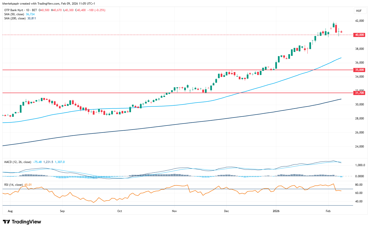 Ingadozó volt az OTP teljesítménye az előző hét során, a hét első felében még új csúcsra tört ki az árfolyam 41 ezer forint felett, viszont a hét második felére elfogyott a lendület. A nemzetközi piacokon uralkodó bizonytalan hangulat nem segített a magyar piac szereplőinek sem, így az OTP grafikonján is kisebb lefordulás volt látható a csúcsszintekről. Technikailag viszont kedvező, hogy láthatóan a 40 ezer forintos szintek felett tudott ragadni egyelőre az árfolyam, ez tehát akár a következő időszakban támaszként szolgálhat. Az OTP negyedik negyedéves jelentése majd március 6-án érkezik, erre várhatnak még a befektetők.